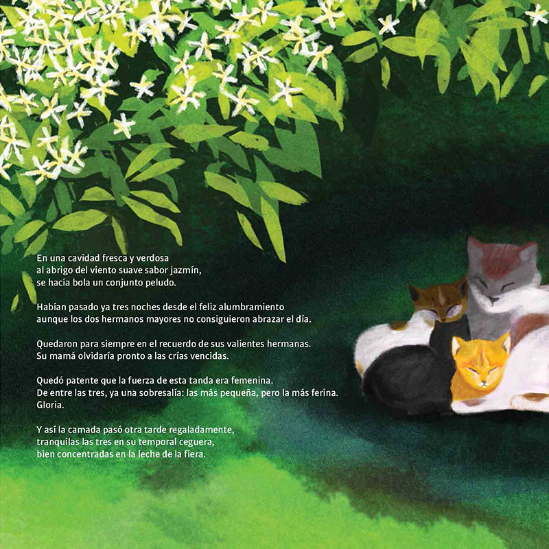 "Gloria, historia de una gata" es un minicómic de 8 páginas ilustradas sobre la vida de una gata salvaje que por sorpresa y necesidad apareció en casa.